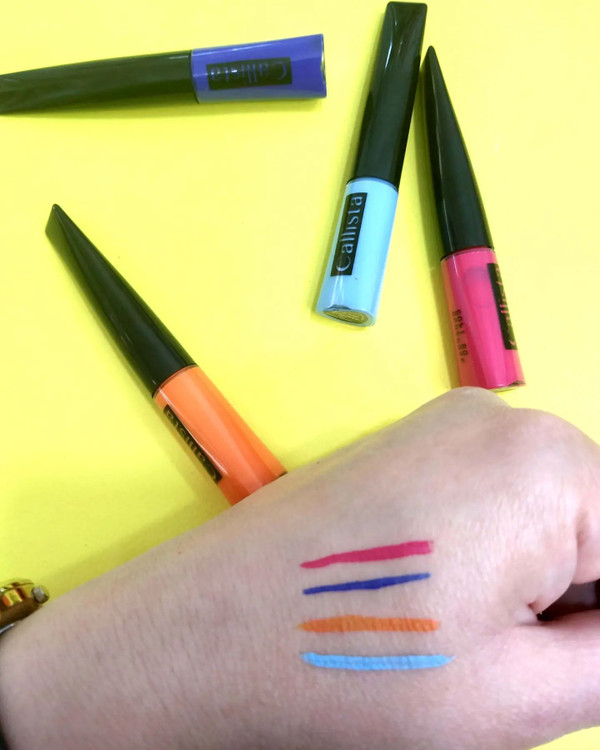 خط چشم رنگی کالیستا مدل یوفوریا دارای رنگ های جذاب دارای قلم مو ی حرفه ای فاقد پارابن بدون حساسیت با ظاهر مات در چهار رنگ02آبی آسمانی،جی،06سرخابی،09 آبی کاربنی